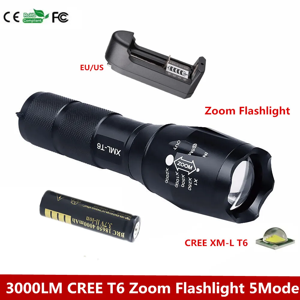 Ultrafire CREE XM-L T6 2000lm Zoomable LED Flashlight Suit ...